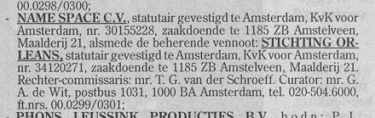 Overenuit.nl - Bij beslissing van de Arrondissementsrechtbank te Amsterdam van 7 november 2000 is het navolgende faillissement UITGESPROKEN: